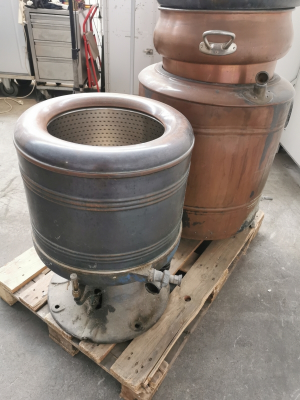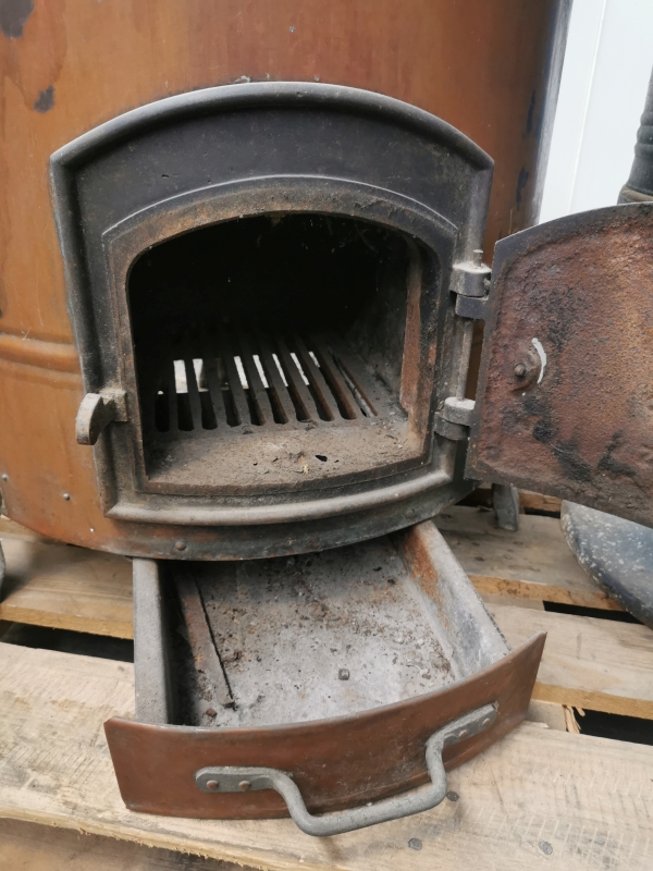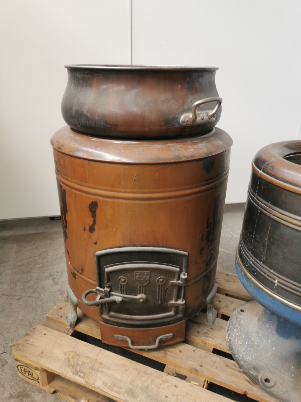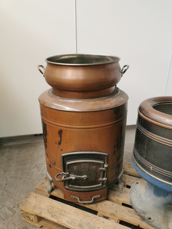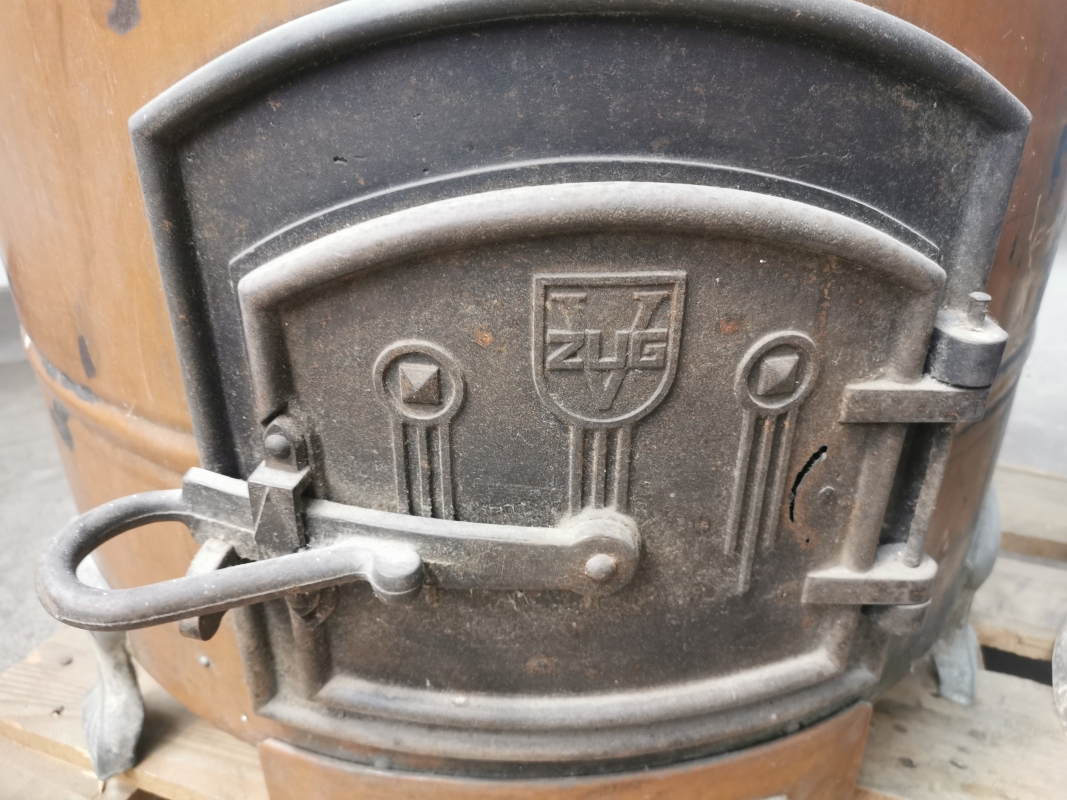 - 1x V-Zug Kupferwaschmaschine mit originaler Gusseisentür (V-Zug-Logo) und Feuerkammer