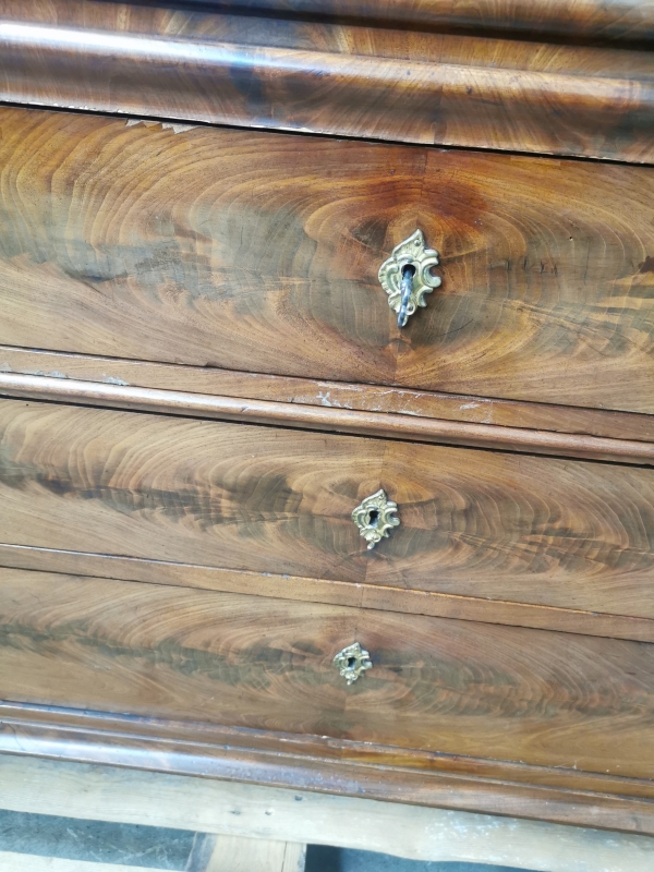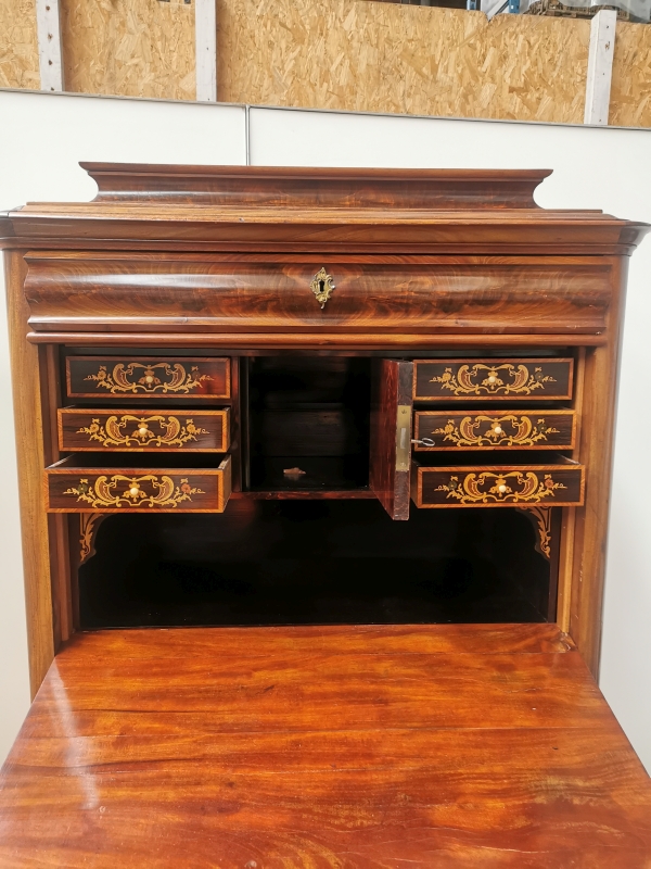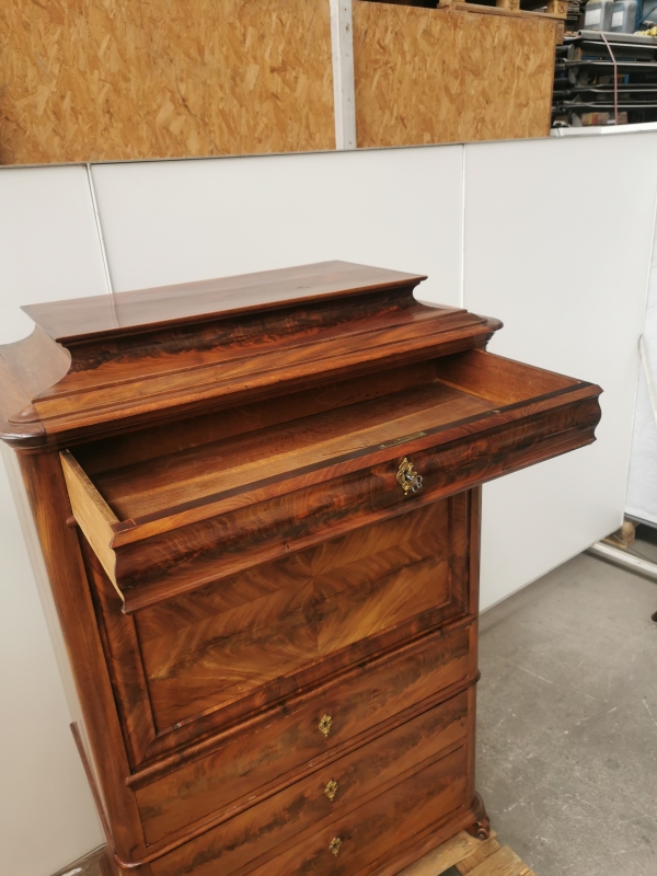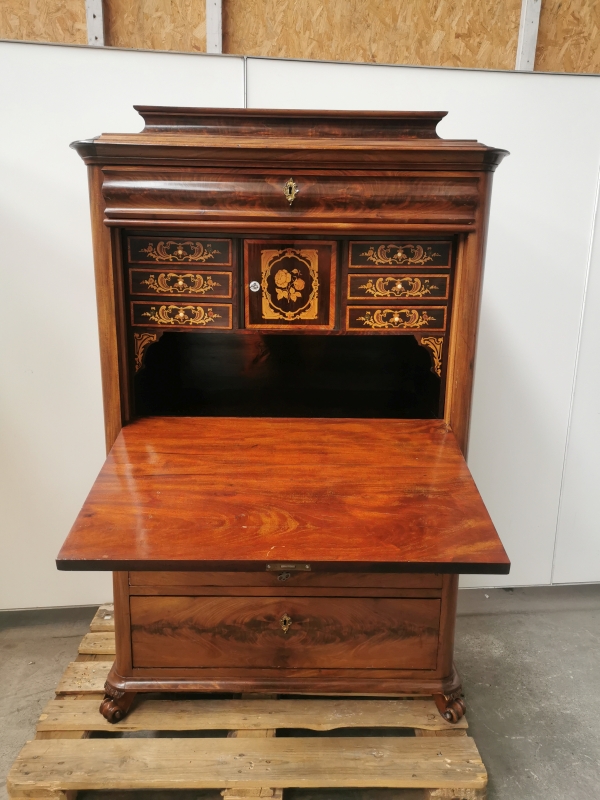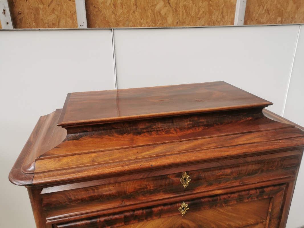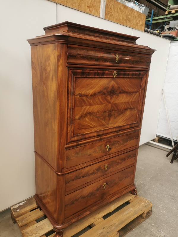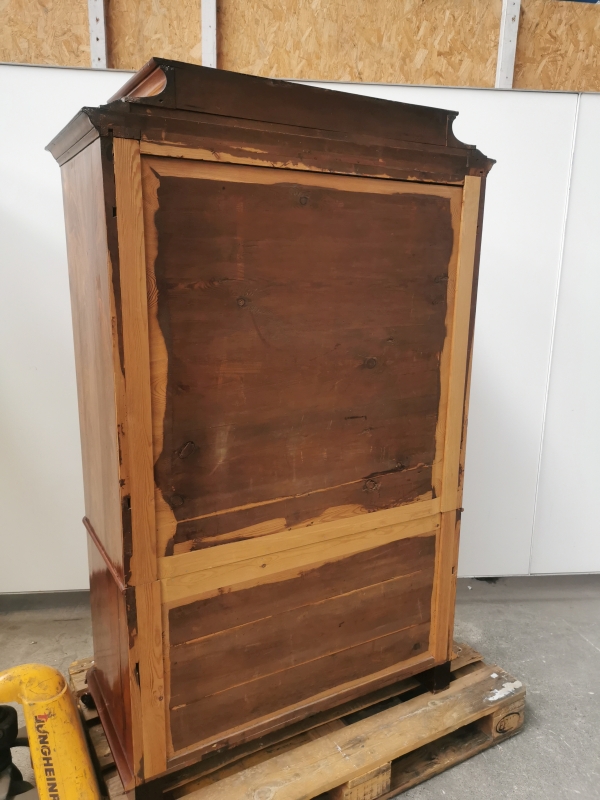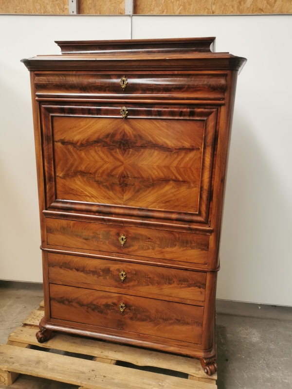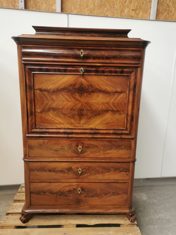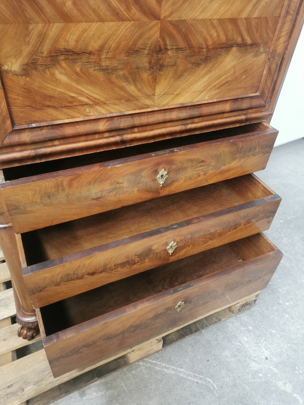 Schöner antiker Schrank (Sekretär), vermutlich aus dem 19. Jahrhundert. Das Möbelstück besticht durch seine edle Holzmaserung und klassische Verarbeitung.