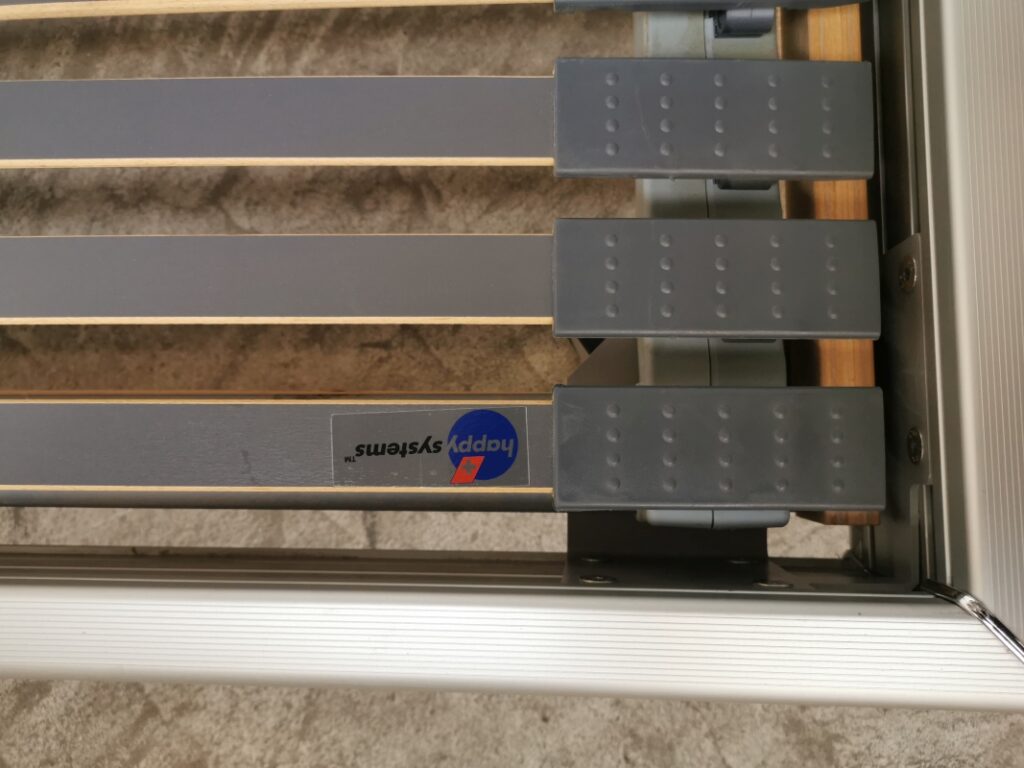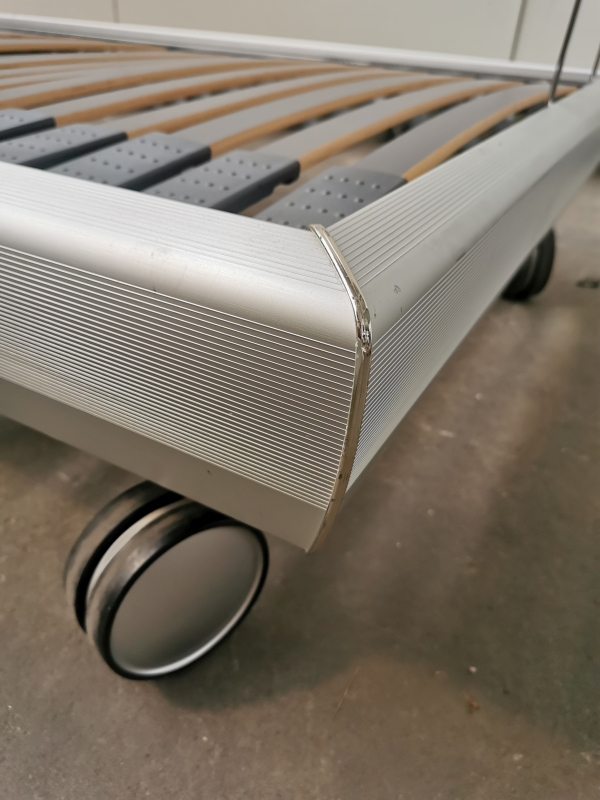 Bemerkung: Die Bettrahmen gebe ich gratis dazu. Es sieht nach Rahmen der Marke Hasena aus. Die Rollen laufen nicht mehr richtig, deshalb empfehle ich diese zu ersetzen.