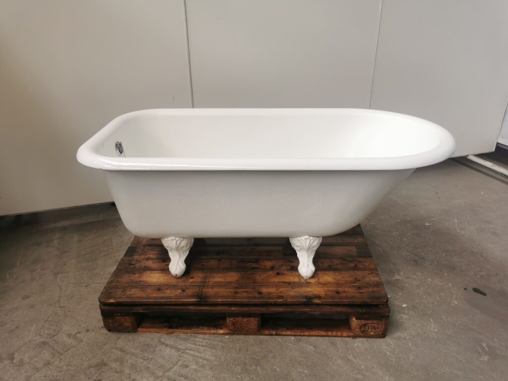 Freistehende Retrobadewanne weisse Emaille Badewanne auf Füssen