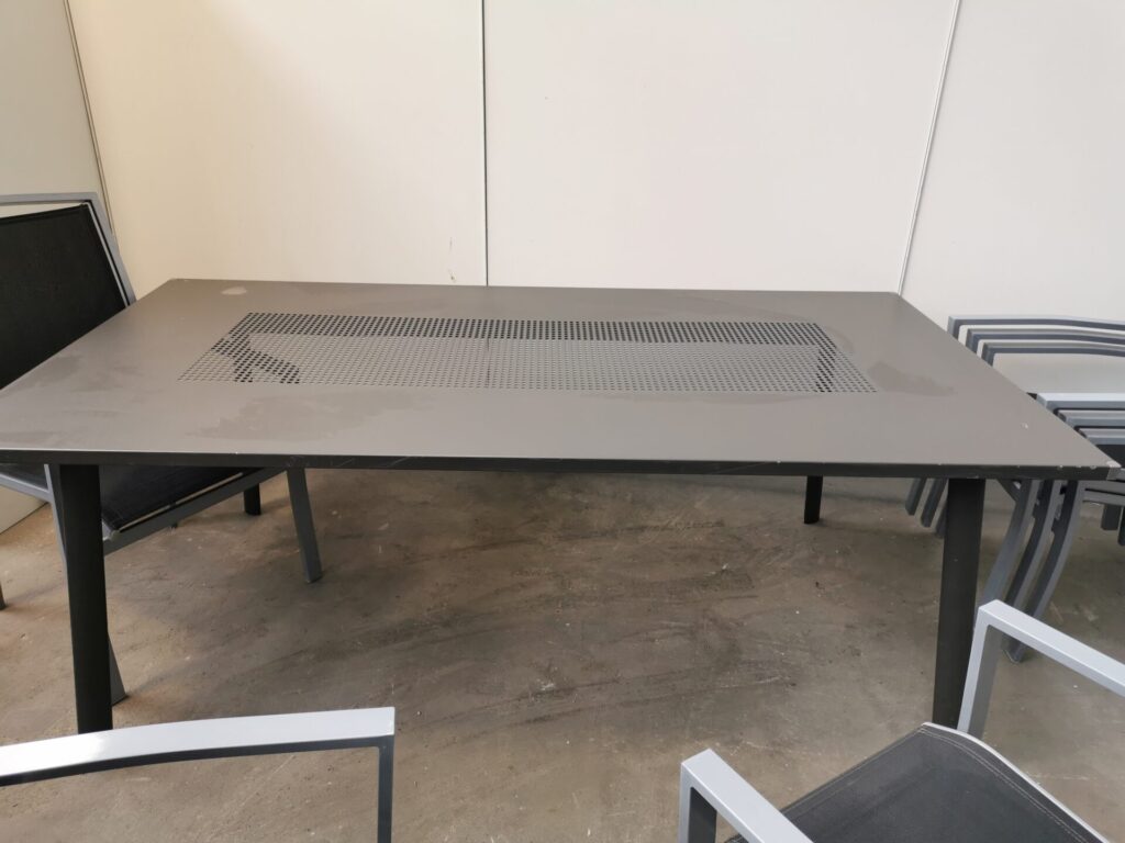 Schlüsselworte: 6 Stühle, Aluminium, Ausseneinrichtung, Aussenmöbel, Balkon, Balkonmöbel, Balkontisch, Besuch, Betriebseinrichtung, Bistro, Einrichten, Einrichtung, Eisen, Esstisch mit Stühlen, Garten, Gartenmöbel, Gartenmöbel Set, Gartenstühle, Gartentisch, Gebraucht, Geschäftseinrichtung, grosser Tisch, Haus, Inneneinrichtung, Laden, Metall, Metalltisch, Möbel, Modern, Outdoor Möbel, Relaxen, Restaurant, robust, Sitzgruppe, Sitzplatz, Stuhl, Terrassenmöbel, Textil, Tisch, Tisch mit Stühlen, Wintergarten Möbel, Wohnen Nein