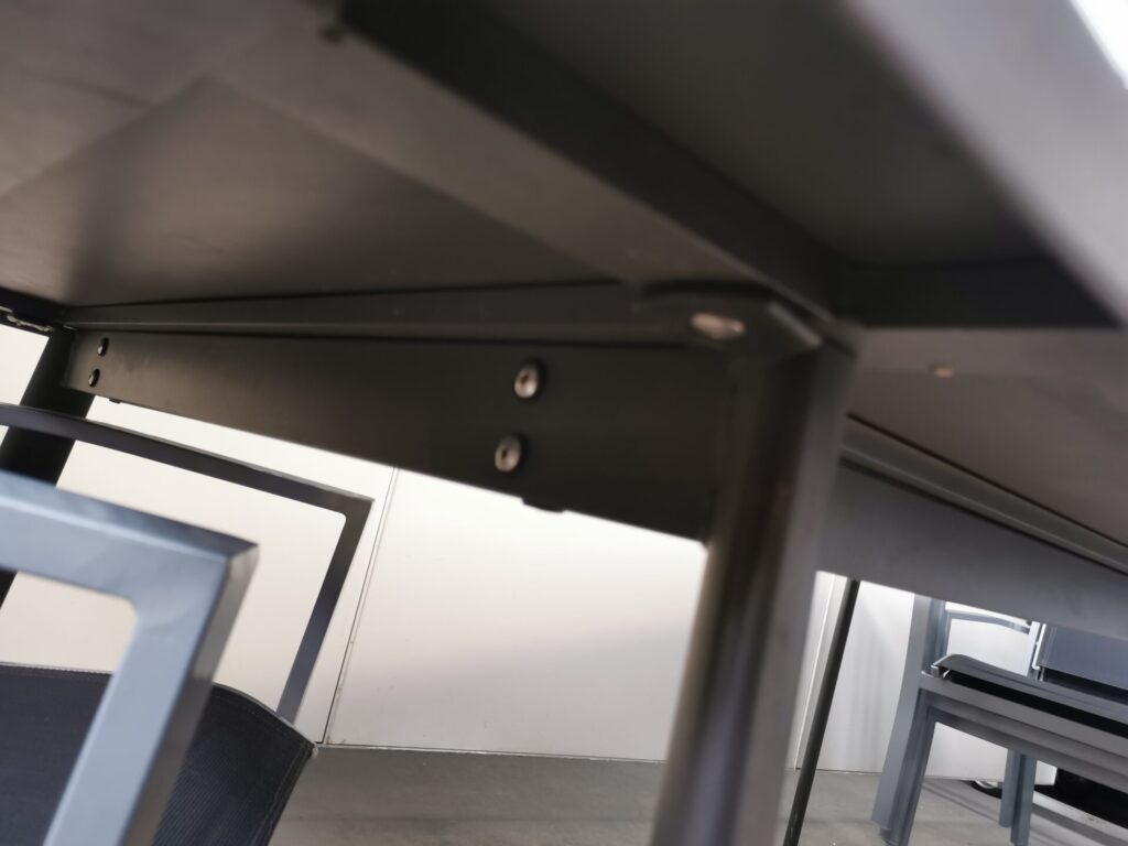 Das Set wirkt modern, stabil und zeitlos und eignet sich für Garten, Terrasse, Wintergarten oder auch für Innenbereiche (z. B. Atelier, Gemeinschaftsraum).
