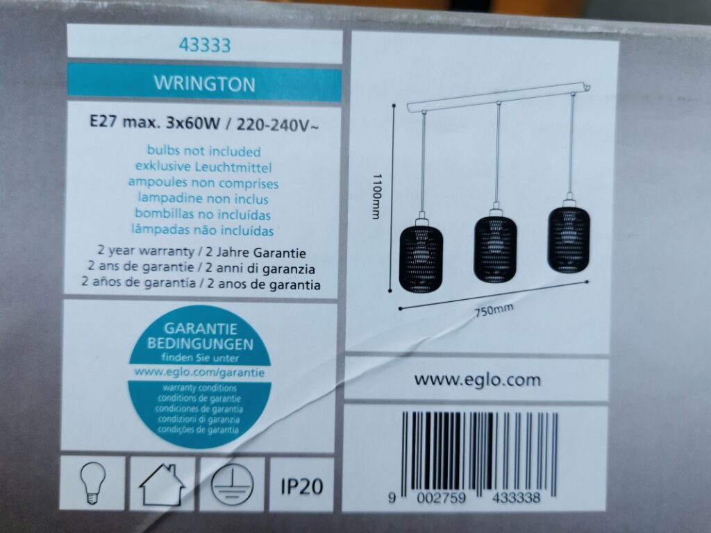 Die Pendelleuchte WRINGTON ist aus drei zylinderförmigen Metall-Lampenschirmen aus schwarzem Streckgitter gefertigt. Durch das Gitter der Leuchtenschirme entstehen faszinierende Licht- und Schattenspiele, sobald die Leuchte eingeschaltet ist. Die Hängelampe fügt sich nahtlos in den Vintage-Trend und in moderne Einrichtungen ein. Sie bietet eine besondere Beleuchtung für jeden Raum – egal ob in der Küche, im Wohnzimmer oder im Esszimmer beispielsweise über einem länglichen Esstisch. Die abgebildeten Filament-Leuchtmittel sind nicht im Lieferumfang enthalten. Geeignet ist die Leuchte für jedes Leuchtmittel mit E27-Sockel.