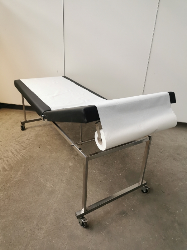 Die robuste Liege lässt sich praktisch und sicher an den gewünschten Platz schieben. Es hat vier Rollen die alle mit einer Bremse versehen sind. Auch hat es einen Rollenhalter für die Hygiene-Papier-Rolle. Bei Bedarf können Sie auch nach diesen Fragen, von Zeit zu Zeit habe ich solche am Lager.