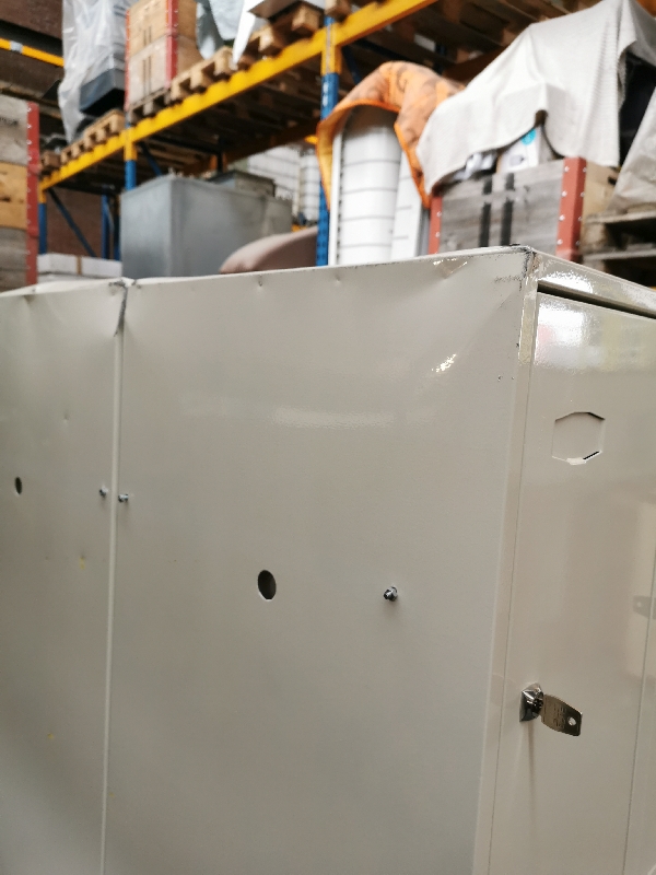 Zustand: Wenig gebraucht, beide haben Beulen an der Seite (Transportschaden). Einer auf der rechten, der andere auf der linken Seite, siehe Fotos. Ebenfalls sind die Kunststoffdämpfer an den Türen durch zu viel Wärme geschmolzen und sind jetzt klebrig, siehe letzten 3 Fotos. Es ist je einen Schlüssel vorhanden.